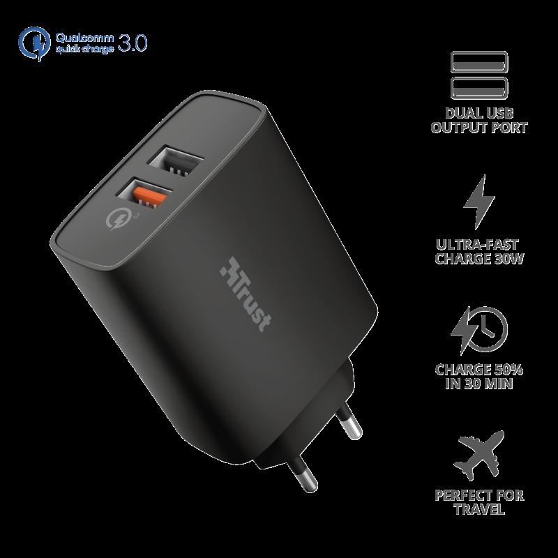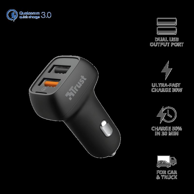 Incarcator rapid pentru masina Trust Qmax 30W Ultra-Fast Dual USB